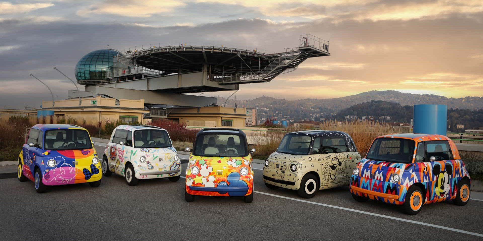 Rodičia i prarodičia však môžu obdivovať niečo iné a to je tak ňuňu, že už ani viac ňuňu nemôže byť žiadne ňuňu. Je to hneď niekoľko modelov Fiat Topolino (porátať ich dajte svojim deťom, za správnu odpoveď im jedno kúpte) odetých do dizajnu inšpirovaného minulosťou, súčasnosťou a nepochybne i budúcnosťou kreslenej legendy akou Mickey Mouse je. Mickey má toho roku 95-te výročie od svojho prvého účinkovania v kreslenom seriáli a zároveň toho roku oslavuje storočnicu celý konglomerát Disney. No a tak prišla príjemná ňuňu spolupráca, ktorej výsledkom je týchto x ňuňu modelov Topolino s naozaj milými livrejami. Autíčka budú vystavené na budove menom Lingotto, ktorá tiež oslavuje storočnicu. A ak vám to nič nehovorí, je to tá budova s okruhom na streche, ktorá preslávila Fiat.